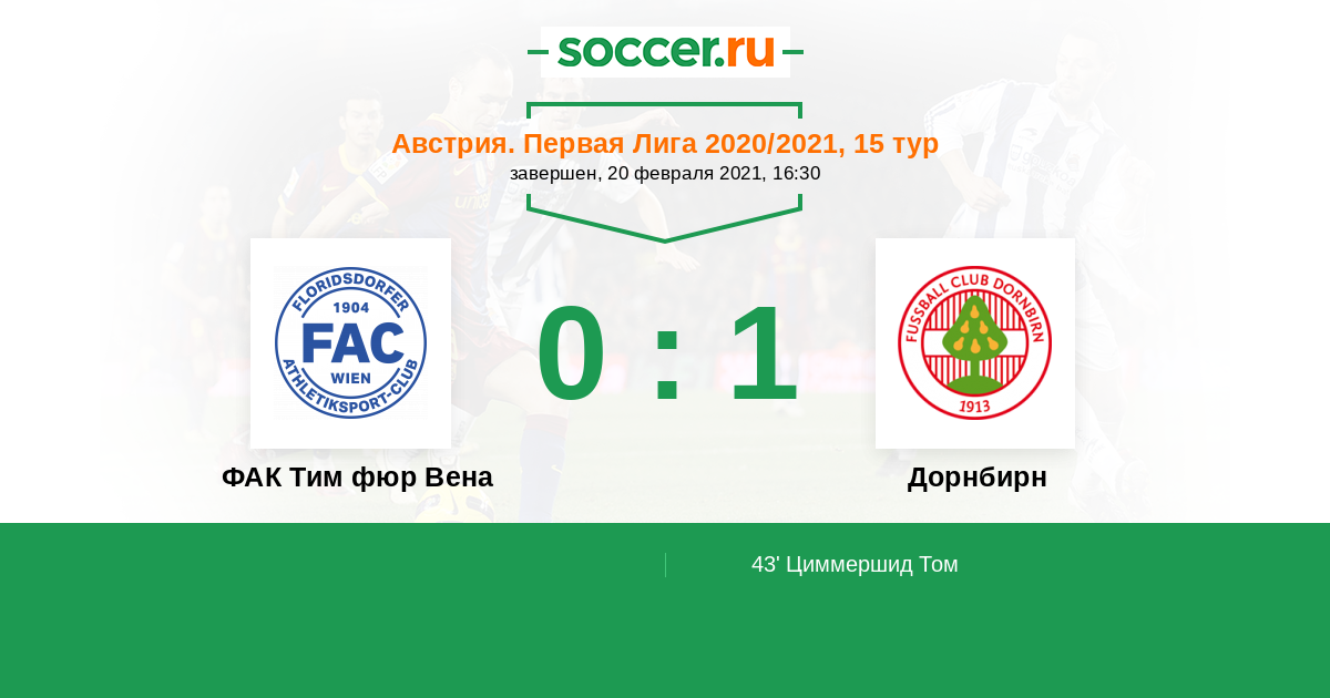 Протокол матча ФАК Тим фюр Вена против Дорнбирн