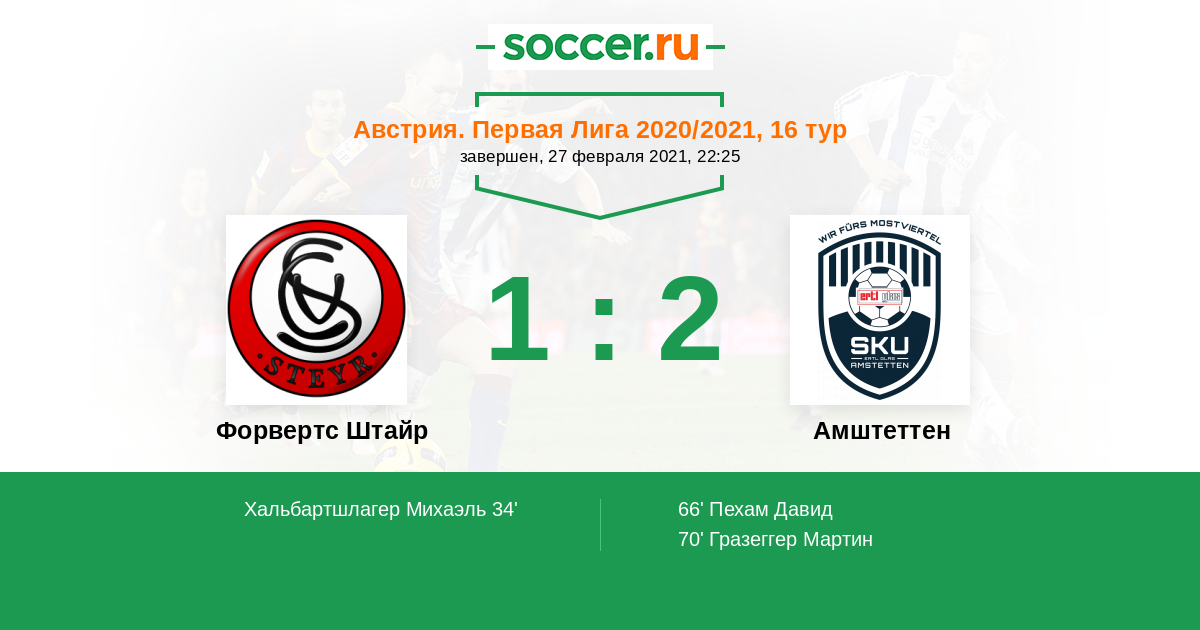 Протокол матча Форвертс Штайр против Амштеттен