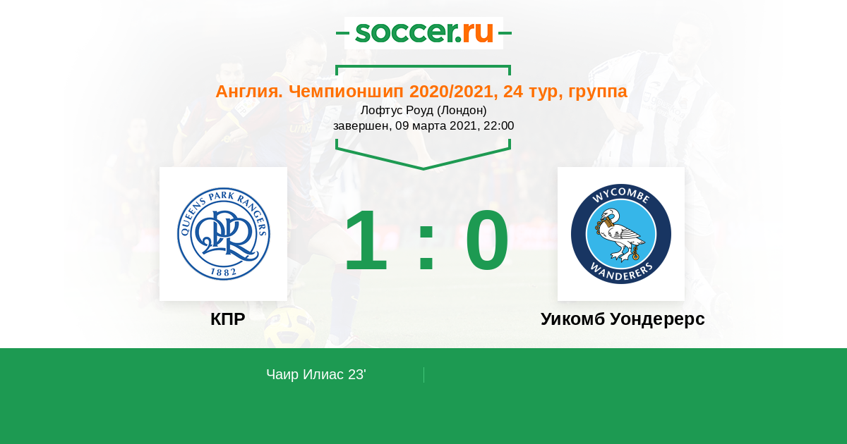 Протокол матча КПР против Уикомб Уондерерс