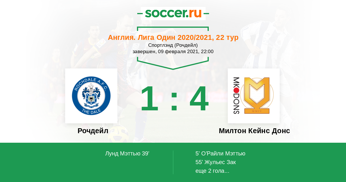 Протокол матча Рочдейл против Милтон Кейнс Донс