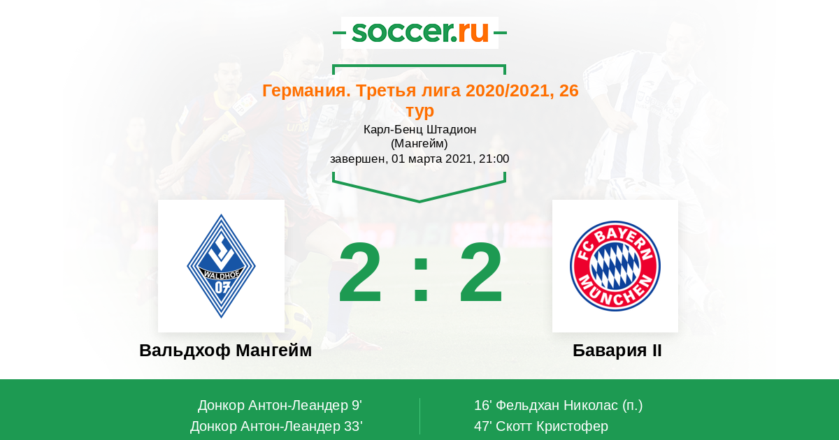 Протокол матча Вальдхоф Мангейм против Бавария II