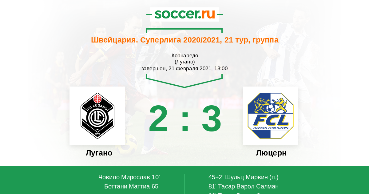 Протокол матча Лугано против Люцерн