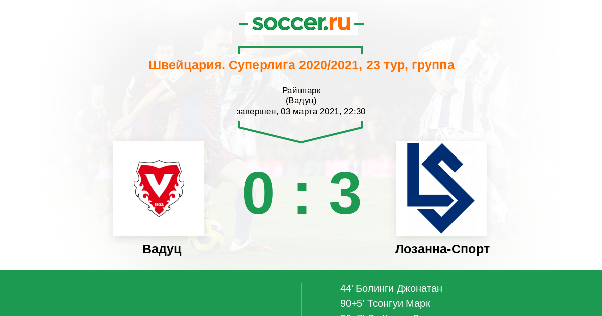 Протокол матча Вадуц против Лозанна-Спорт