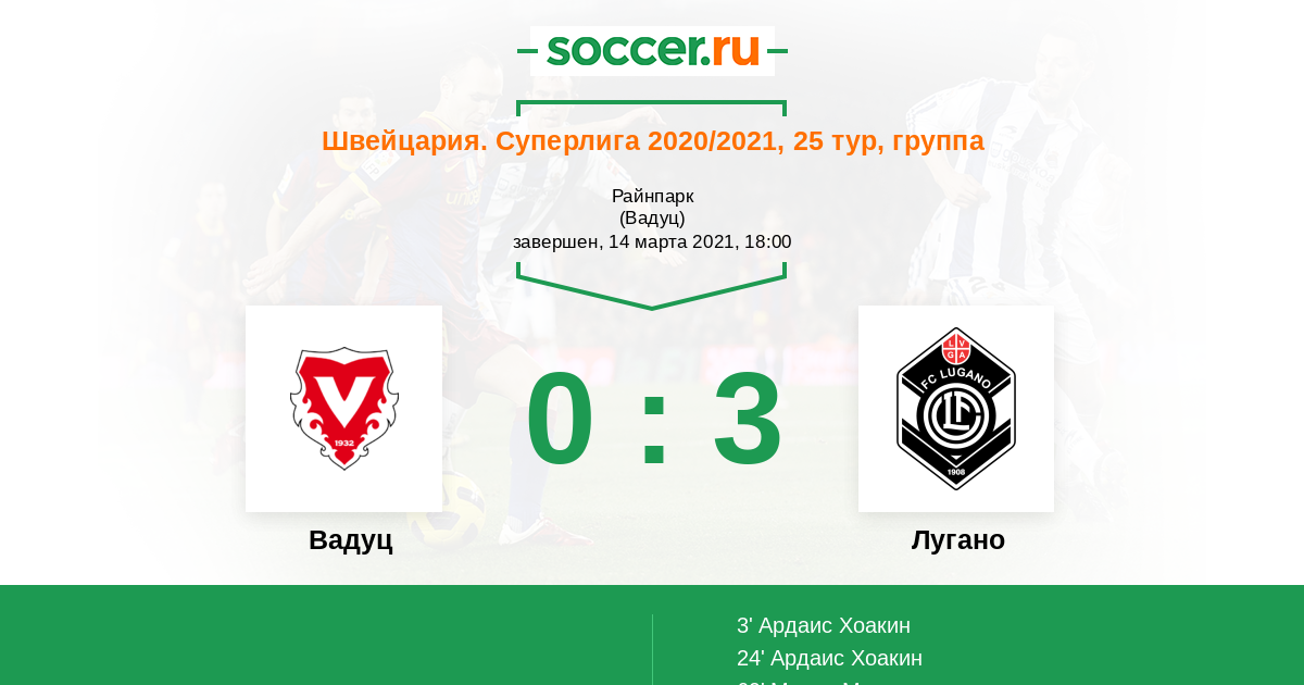 Протокол матча Вадуц против Лугано