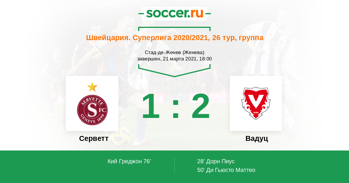 Протокол матча Серветт против Вадуц