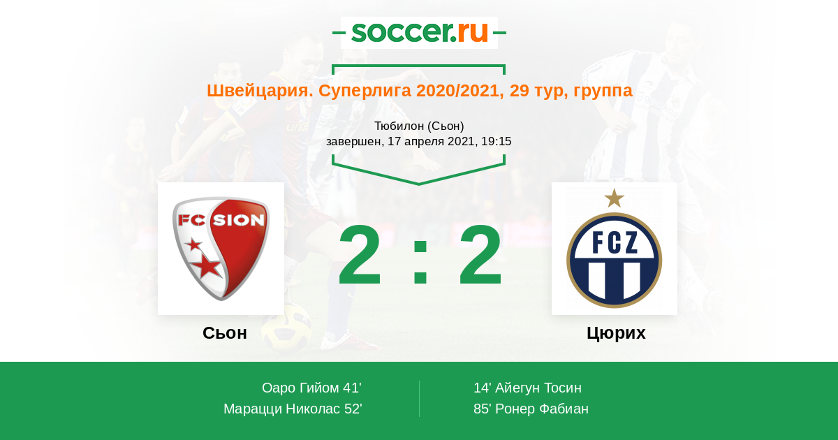 Протокол матча Сьон против Цюрих