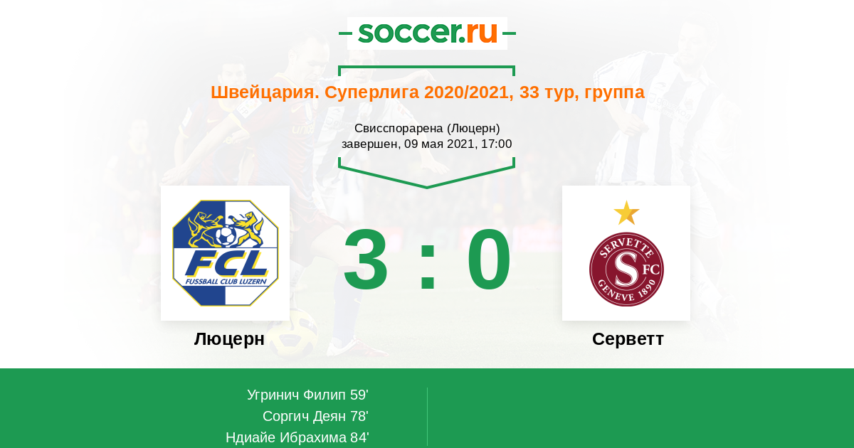 Протокол матча Люцерн против Серветт