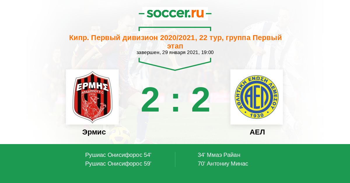 Протокол матча Эрмис против АЕЛ