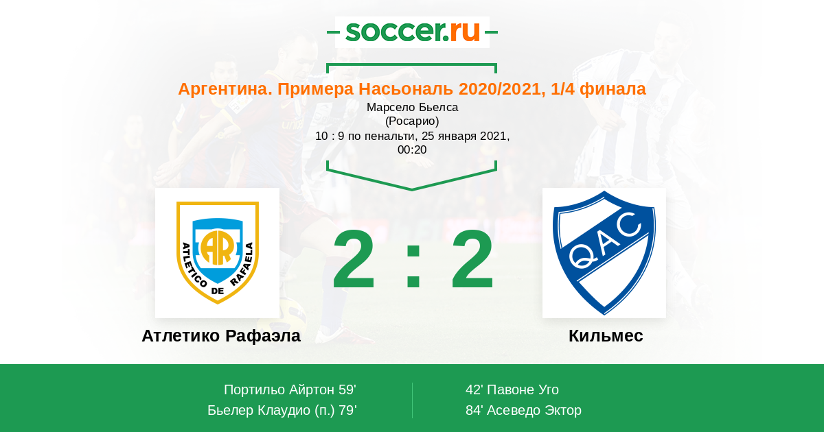 Протокол матча Атлетико Рафаэла против Кильмес