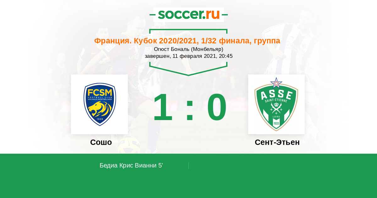 Протокол матча Сошо против Сент-Этьен
