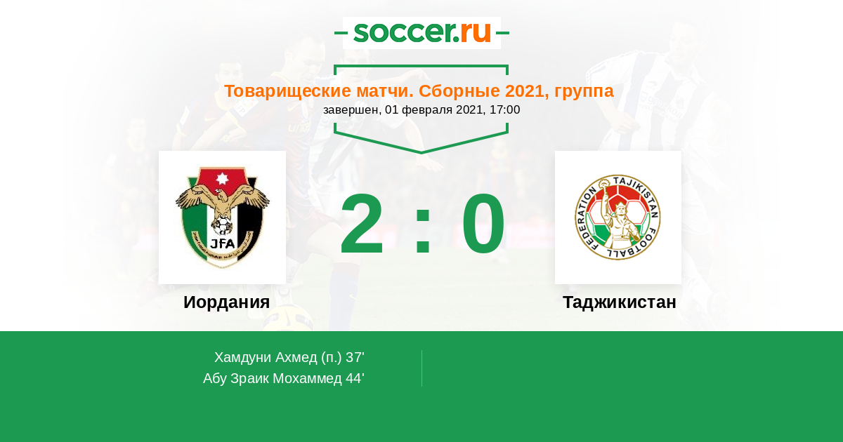 Протокол матча Иордания против Таджикистан