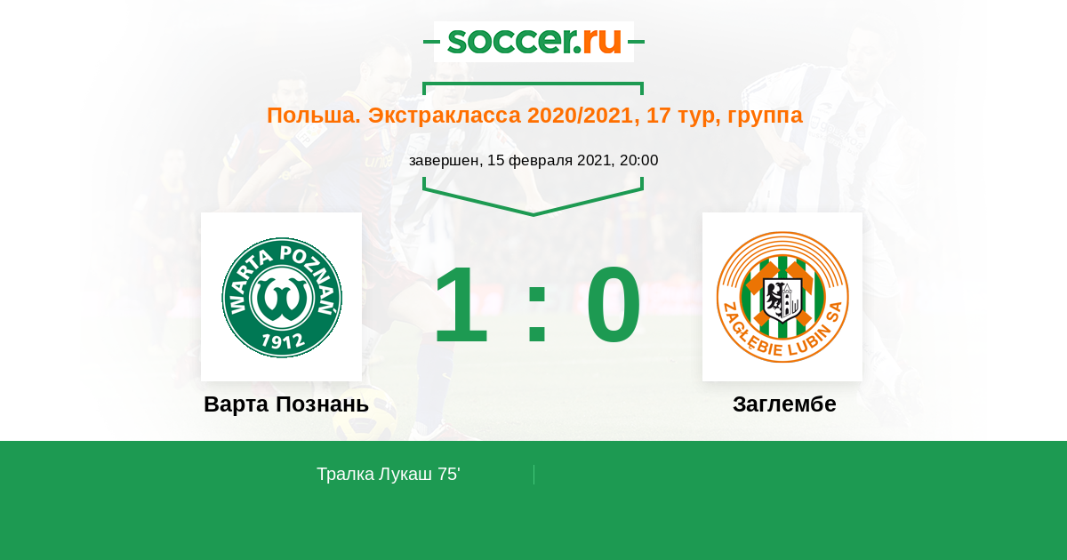 Протокол матча Варта Познань против Заглембе