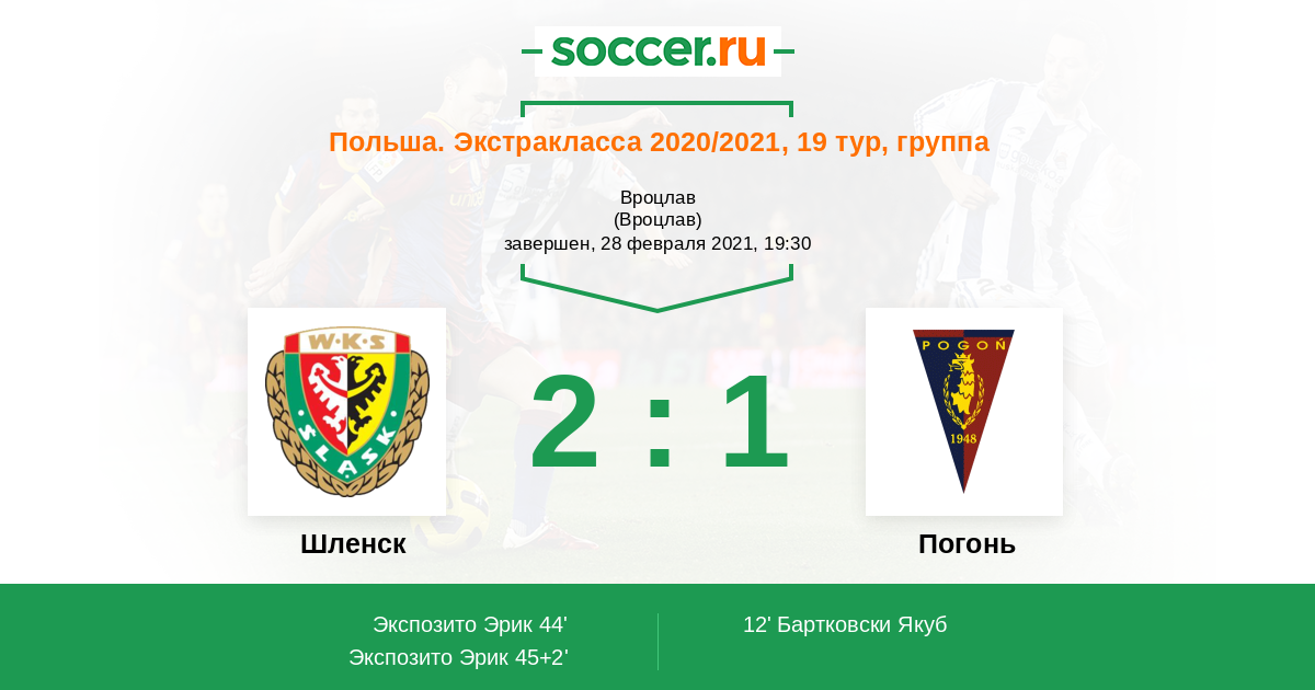 Протокол матча Шленск против Погонь