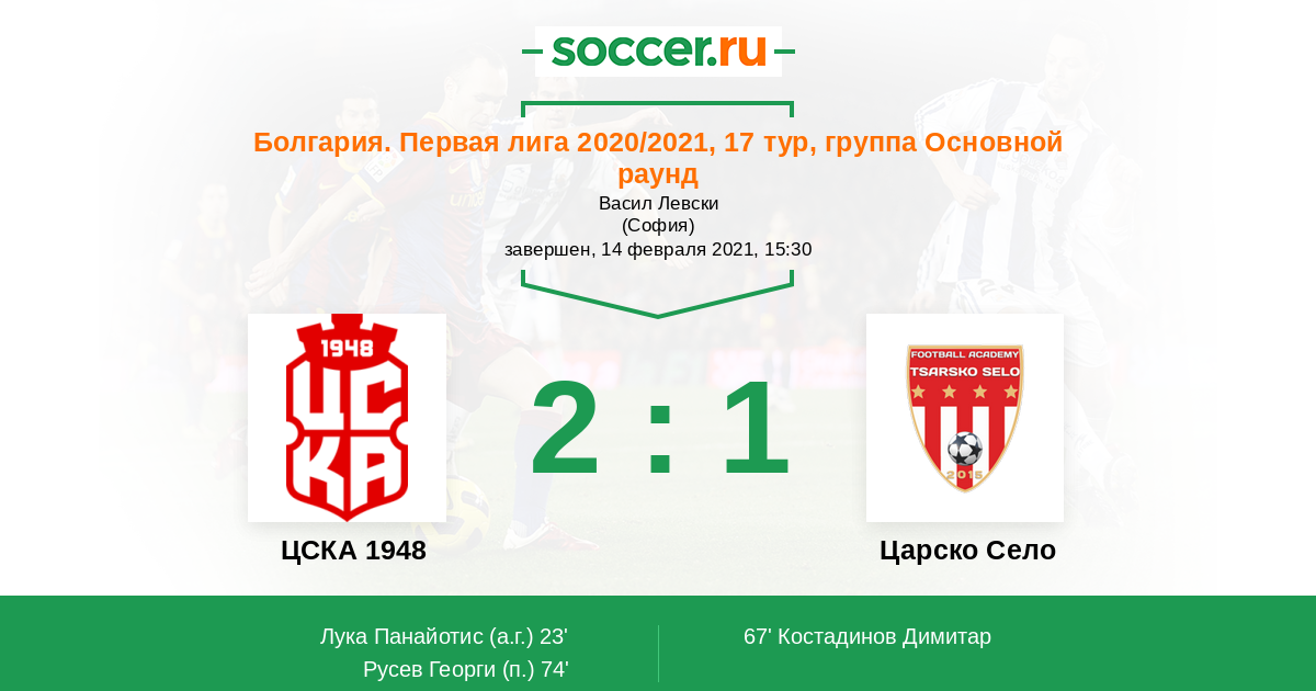 Протокол матча ЦСКА 1948 против Царско Село