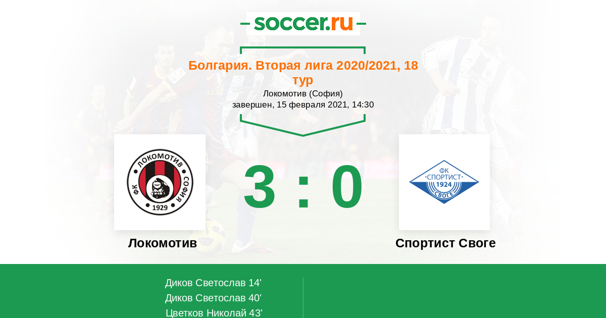 Протокол матча Локомотив против Спортист Своге