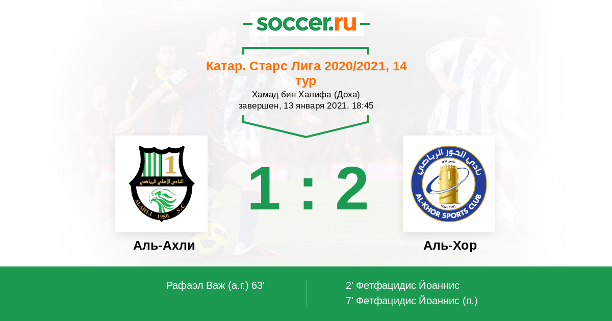 Протокол матча Аль-Ахли против Аль-Хор