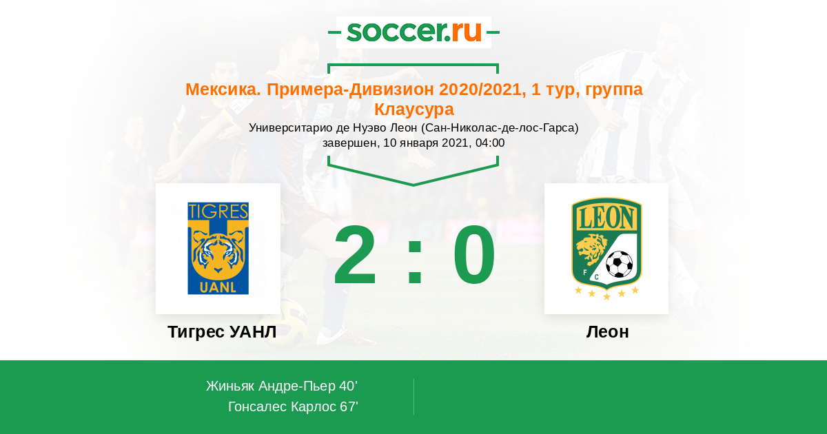 Протокол матча Тигрес УАНЛ против Леон