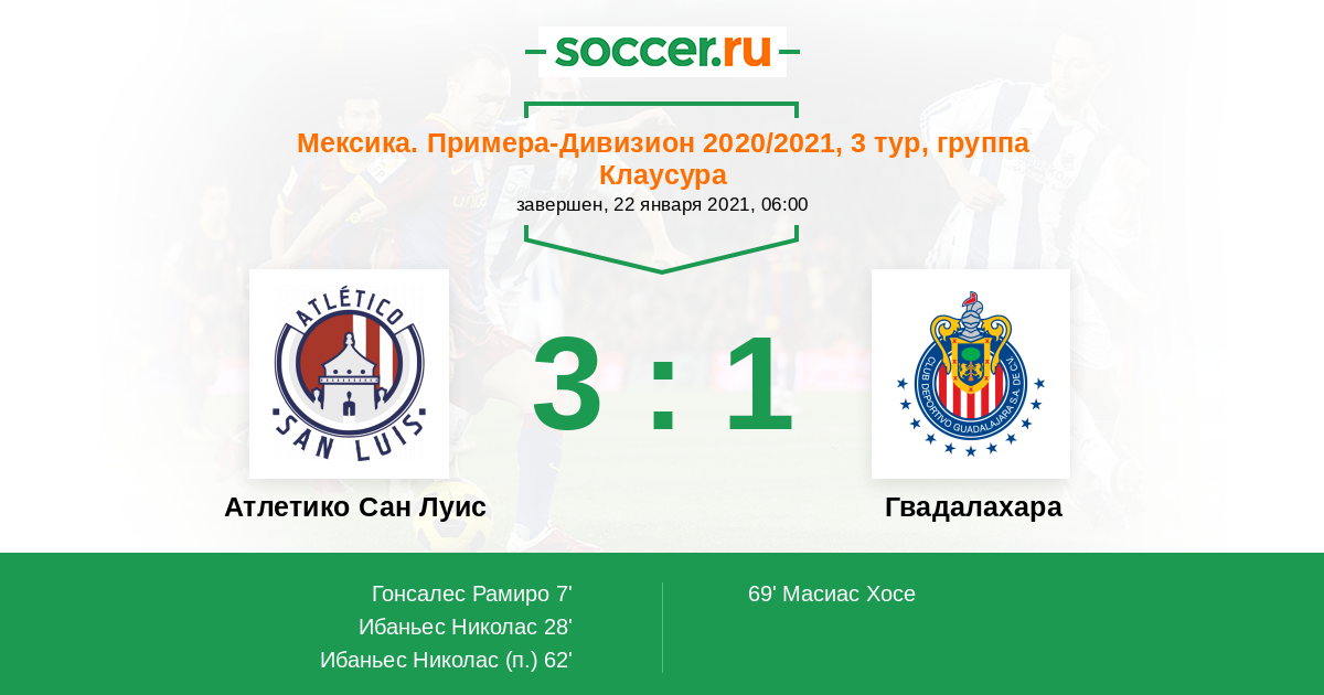 Протокол матча Атлетико Сан Луис против Гвадалахара