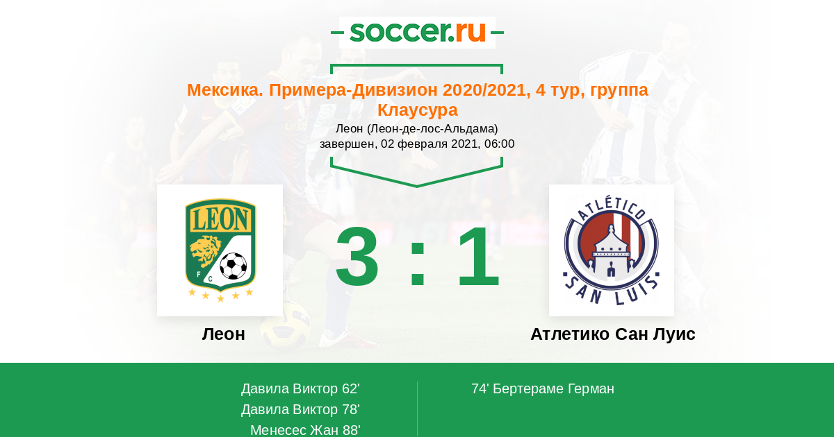 Протокол матча Леон против Атлетико Сан Луис