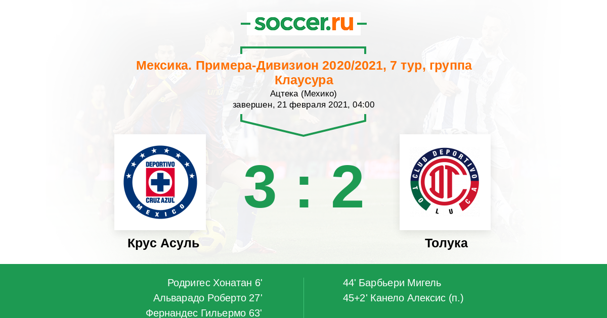 6' (1:0) Родригес Хонатан (21) (Бака Рафаэль (22))