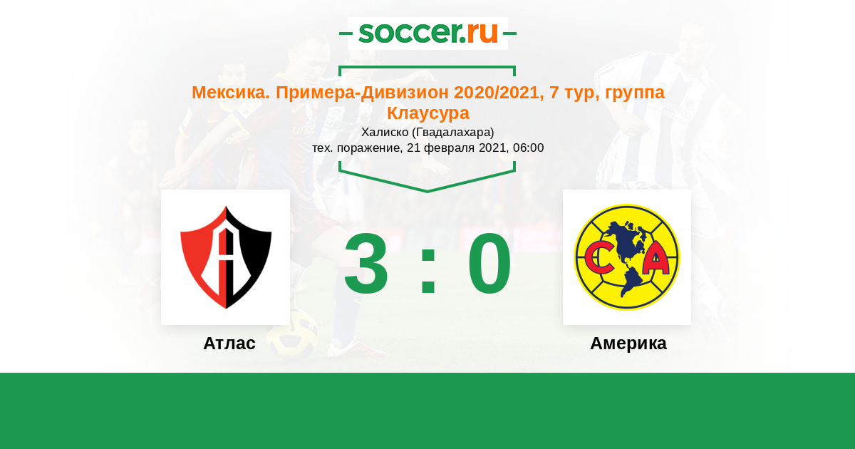 Расстановка матча Атлас против Америка