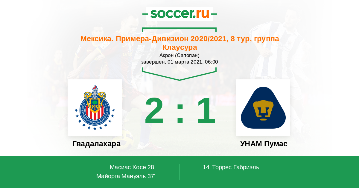 37' (2:1) Майорга Мануэль (2) (Масиас Хосе (9))