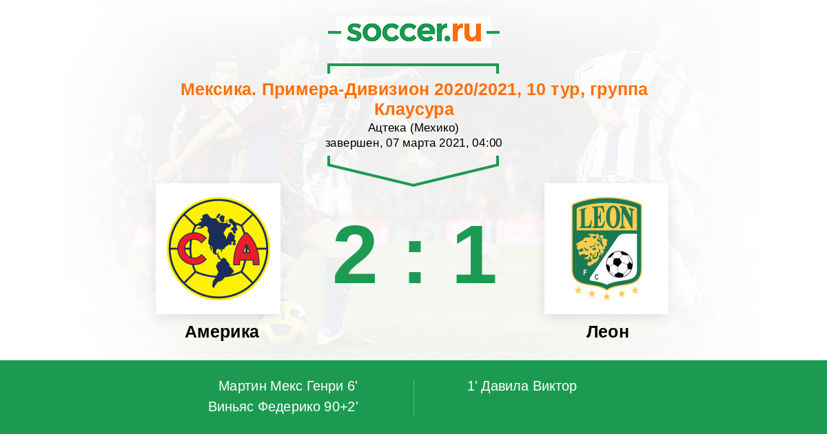 Протокол матча Америка против Леон
