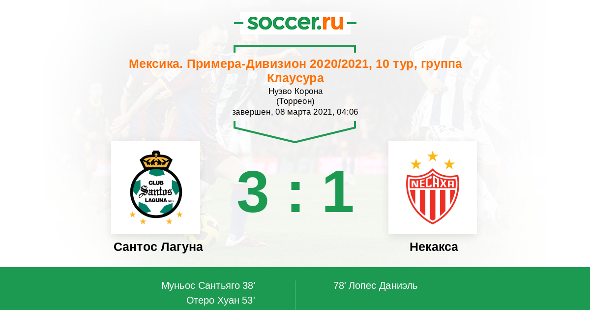 Протокол матча Сантос Лагуна против Некакса