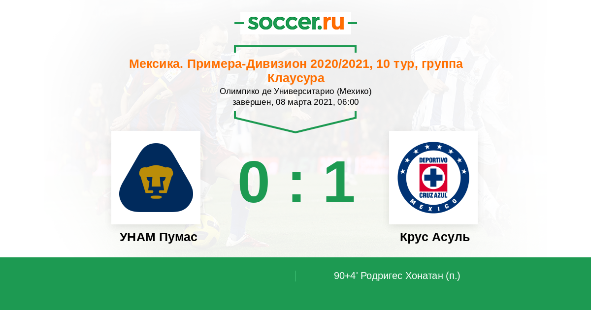 Протокол матча УНАМ Пумас против Крус Асуль