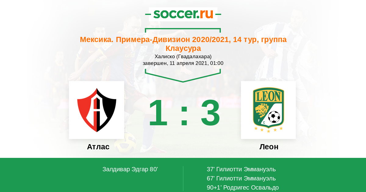 Протокол матча Атлас против Леон
