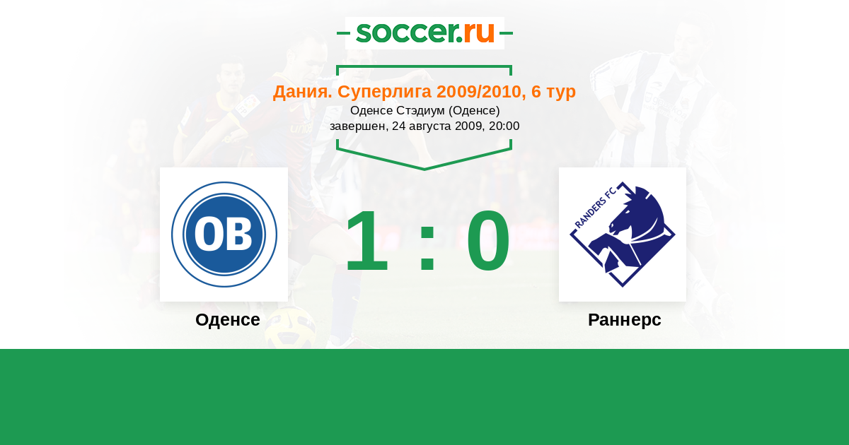 Дания. Суперлига 26.07.2010 Оденсе Логотип футбольный клуб Оденсе 1:1 Логотип футбольный клуб Раннерс Раннерс