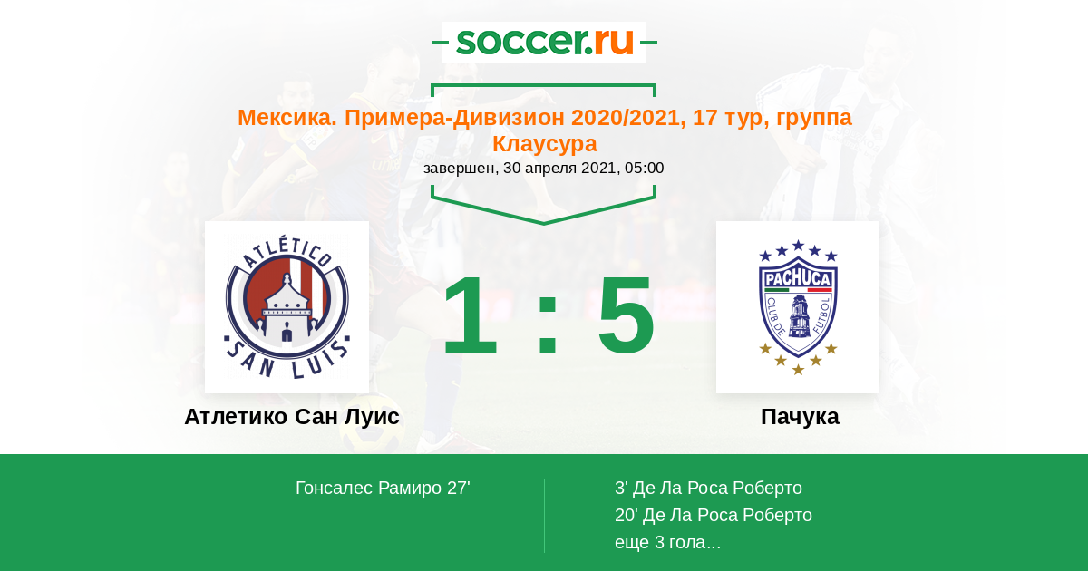 Протокол матча Атлетико Сан Луис против Пачука