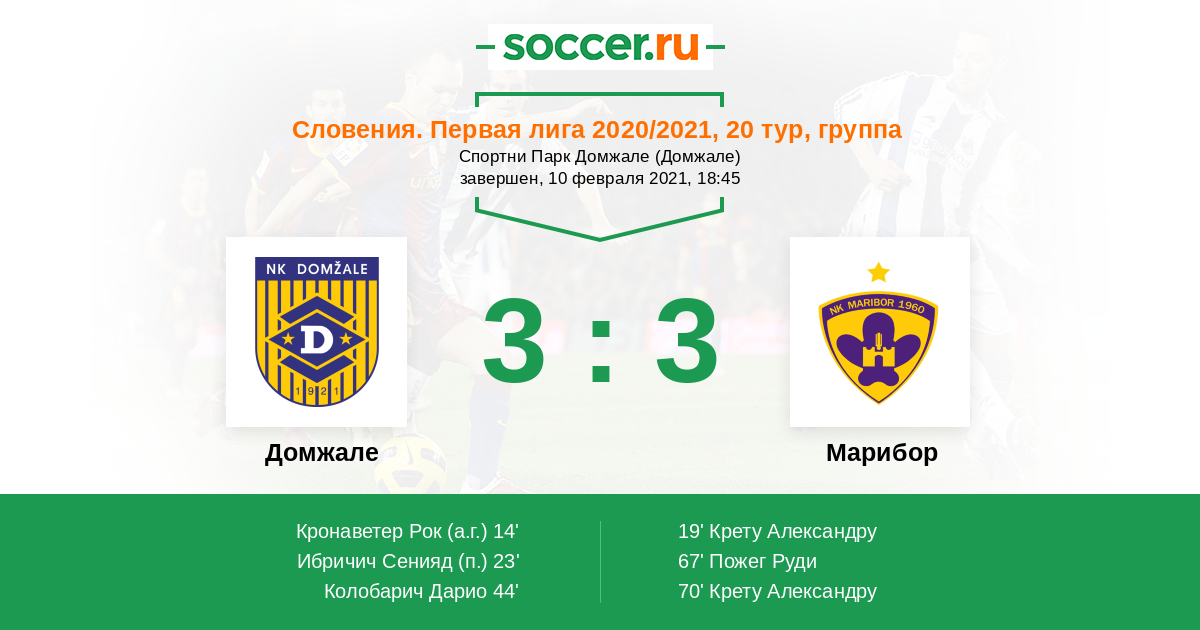 Протокол матча Домжале против Марибор