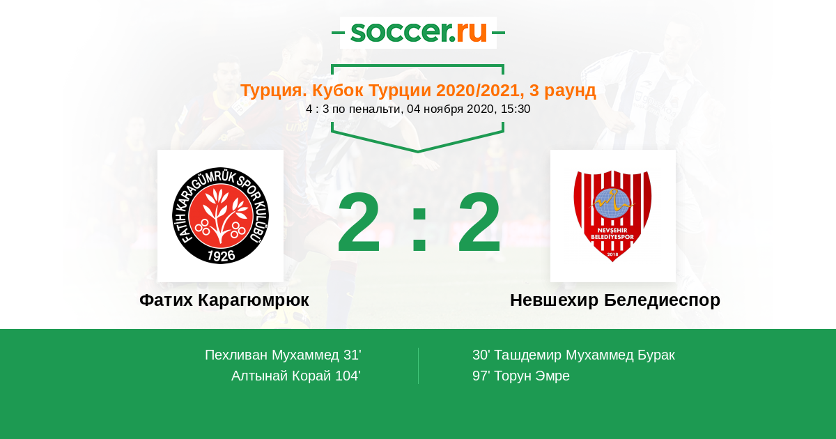 Протокол матча Фатих Карагюмрюк против Невшехир Беледиеспор