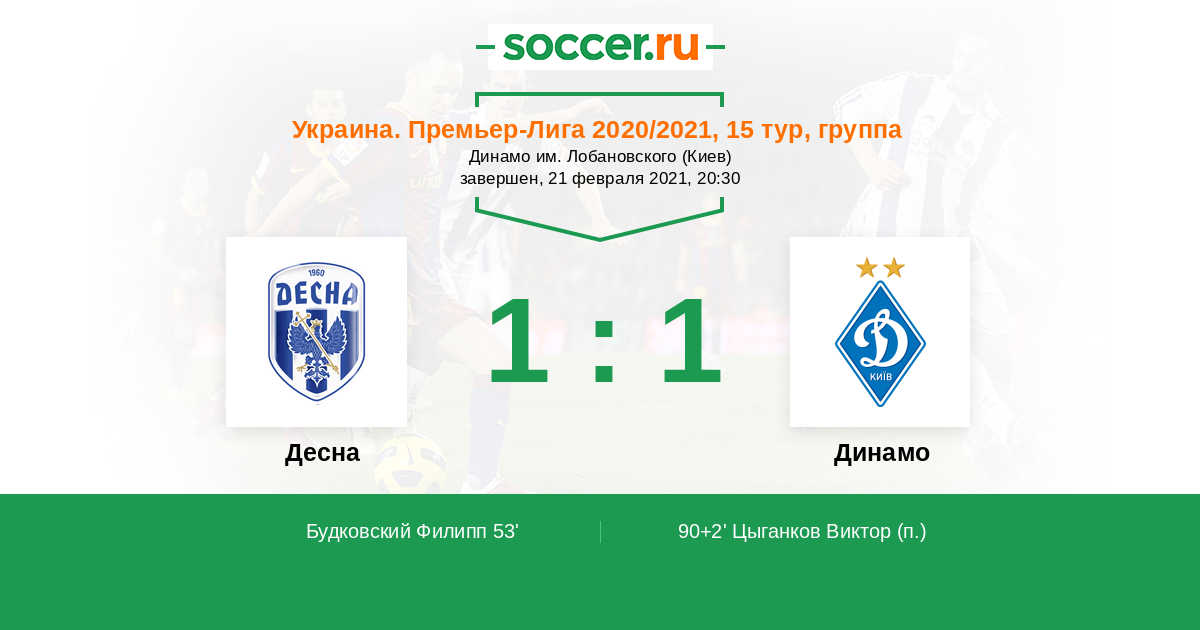 Протокол матча Десна против Динамо