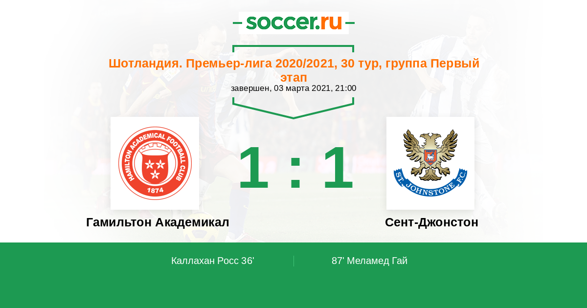 Протокол матча Гамильтон Академикал против Сент-Джонстон