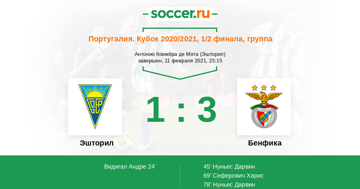 Обыграв 2:0 в последнем туре «Фамаликан», «Бенфика» прервала серию без побед в чемпионате из четырех матчей.«Бенфика» растеряла очень много очков в последнее время и серьезно отстала от лидера, но во многом эти неудачи были связаны с эпидемией, которая вывела из игры большую часть основных игроков. Сейчас же с составом у «орлов» полный порядок и сегодня они наверняка будут стремиться решить все вопросы с выходом в финал, не откладывая их на ответный матч. «Эшторил» находится не в лучшей форме и вряд ли способен дать бой.