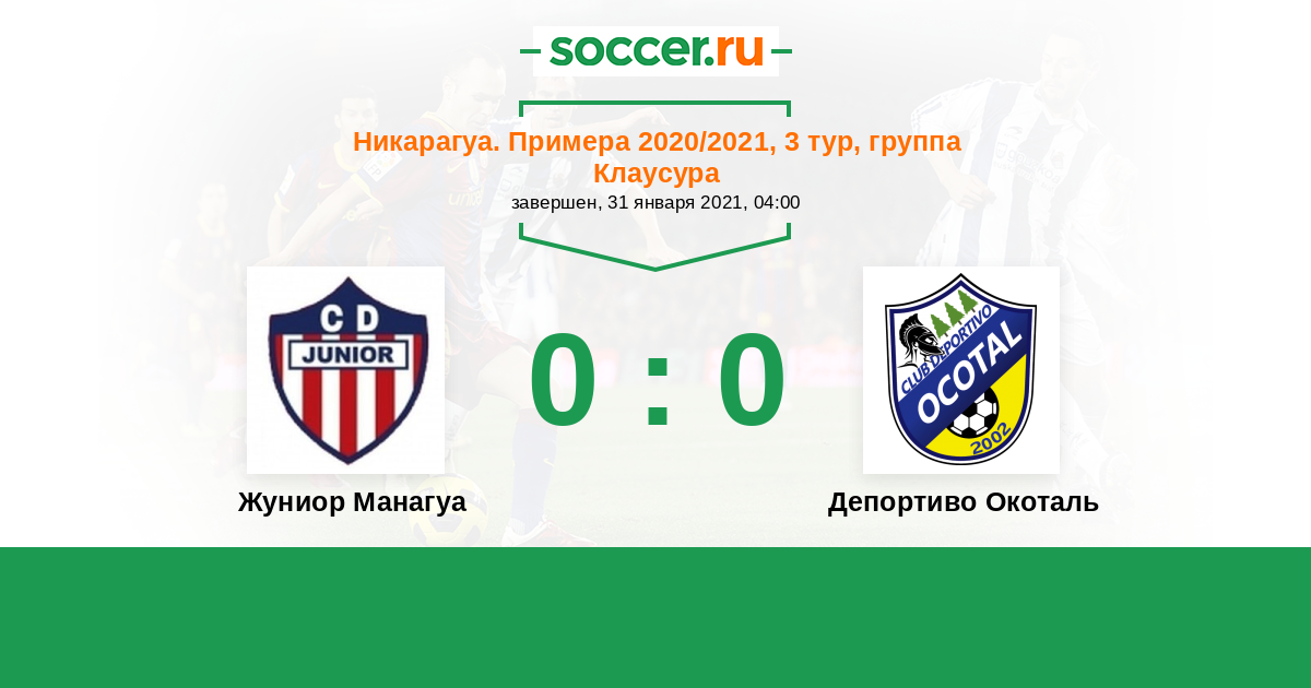 Протокол матча Жуниор Манагуа против Депортиво Окоталь