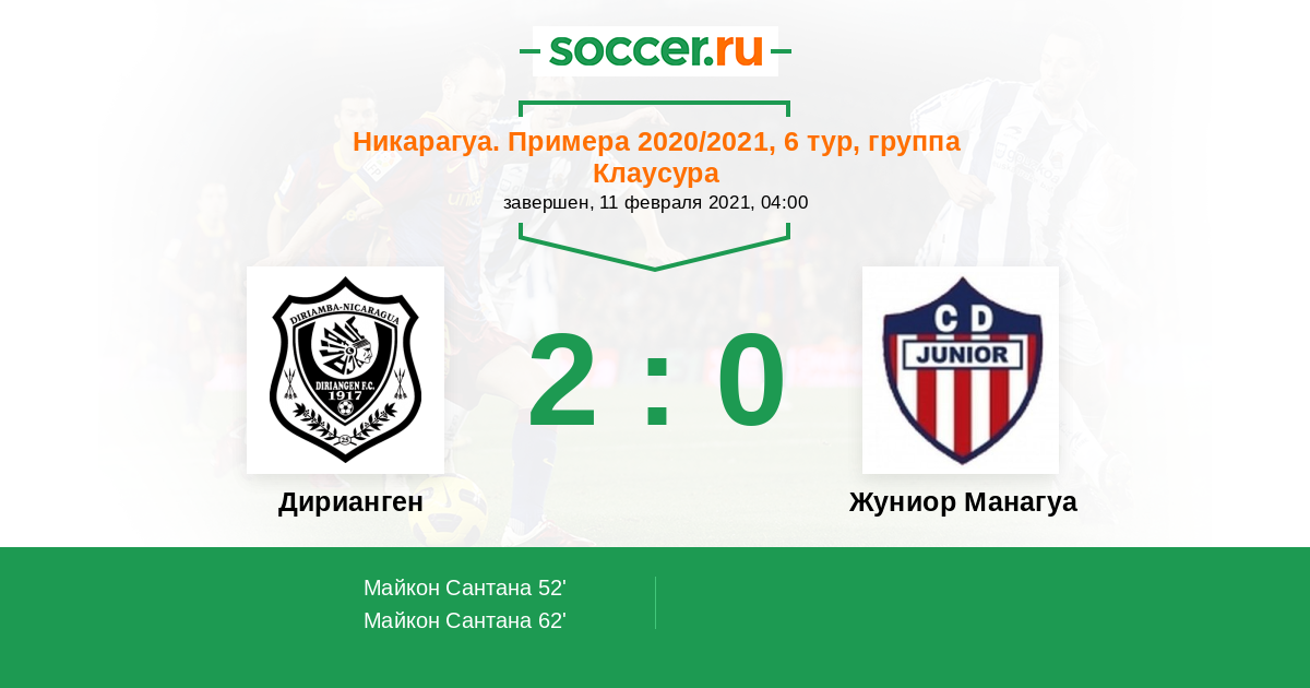 Протокол матча Дирианген против Жуниор Манагуа