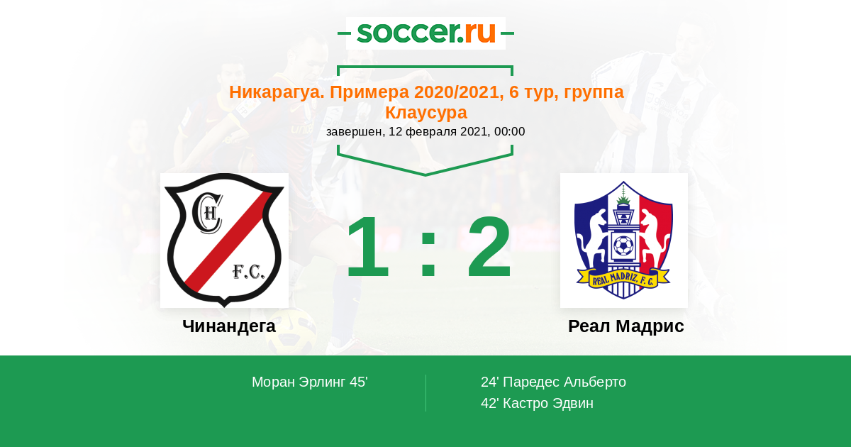 Протокол матча Чинандега против Реал Мадрис
