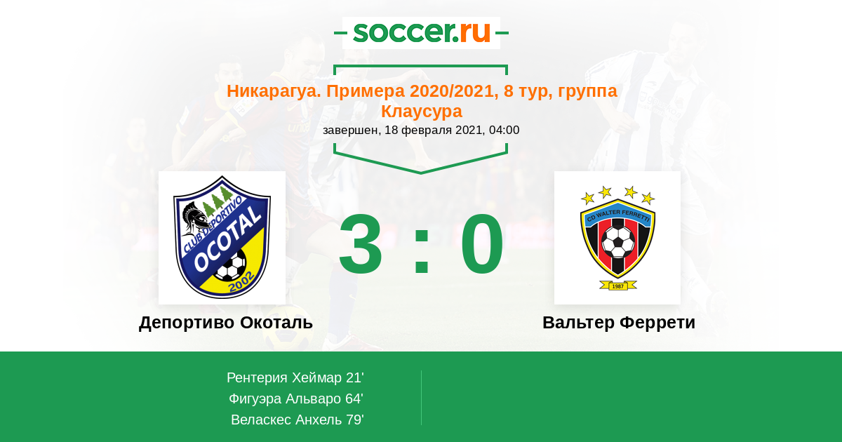 Протокол матча Депортиво Окоталь против Вальтер Феррети