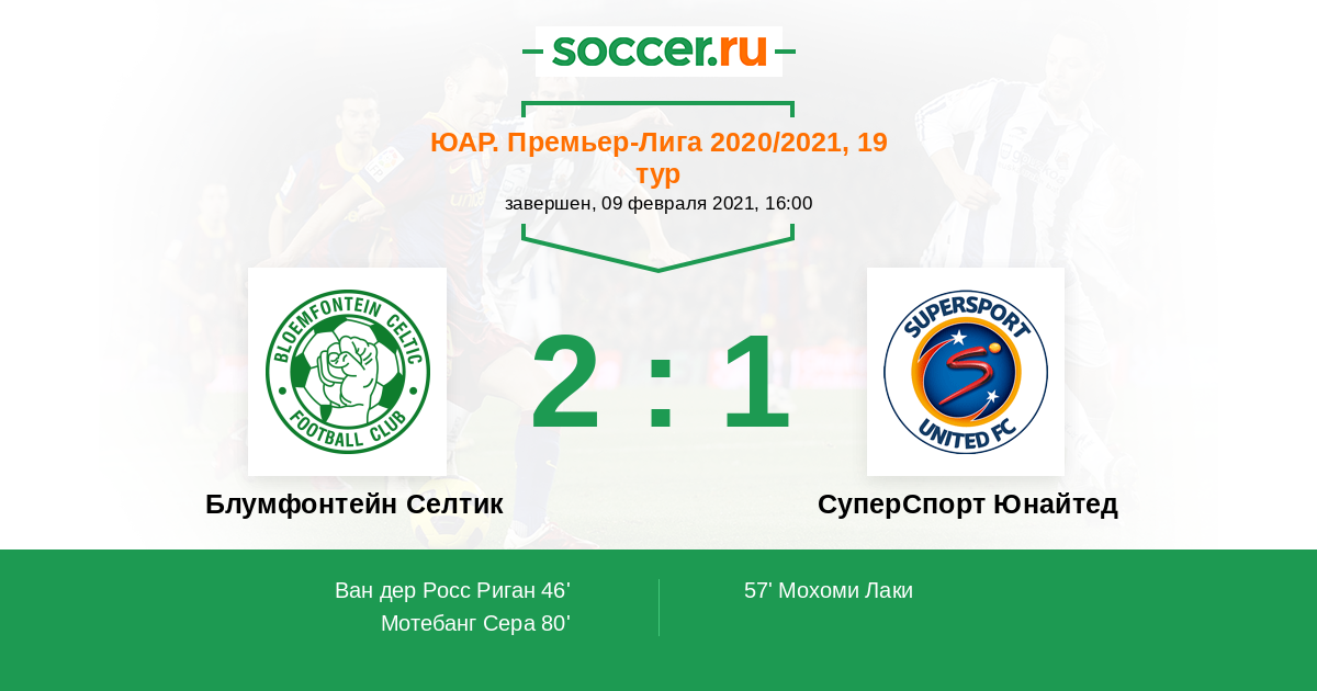 Протокол матча Блумфонтейн Селтик против СуперСпорт Юнайтед