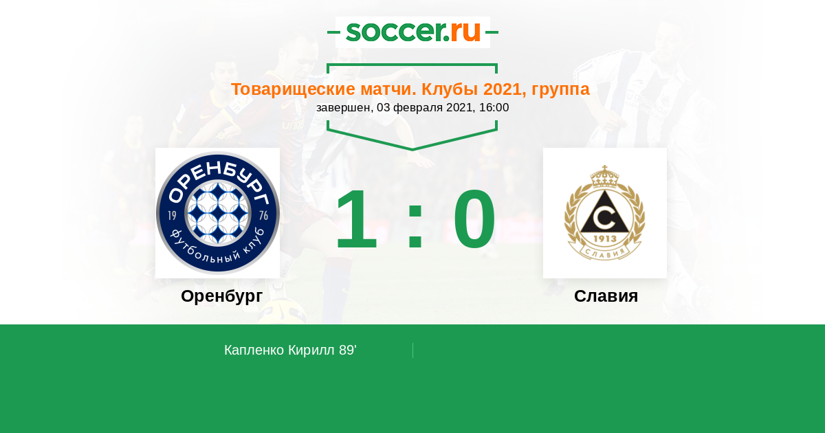 Протокол матча Оренбург против Славия