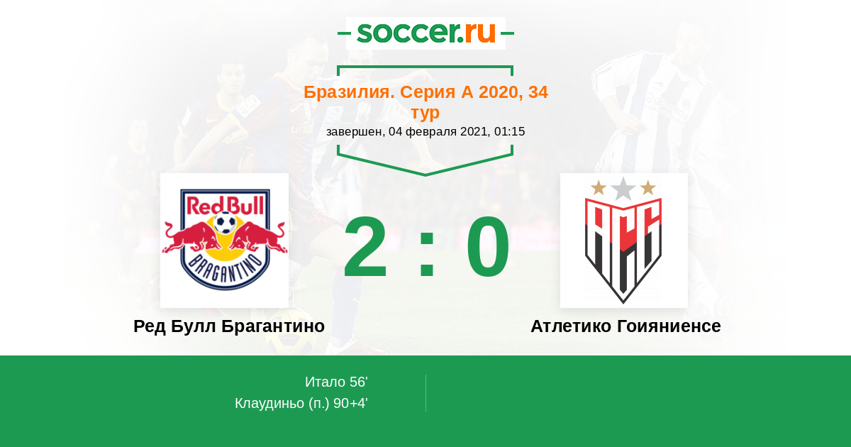 Протокол матча Ред Булл Брагантино против Атлетико Гоияниенсе