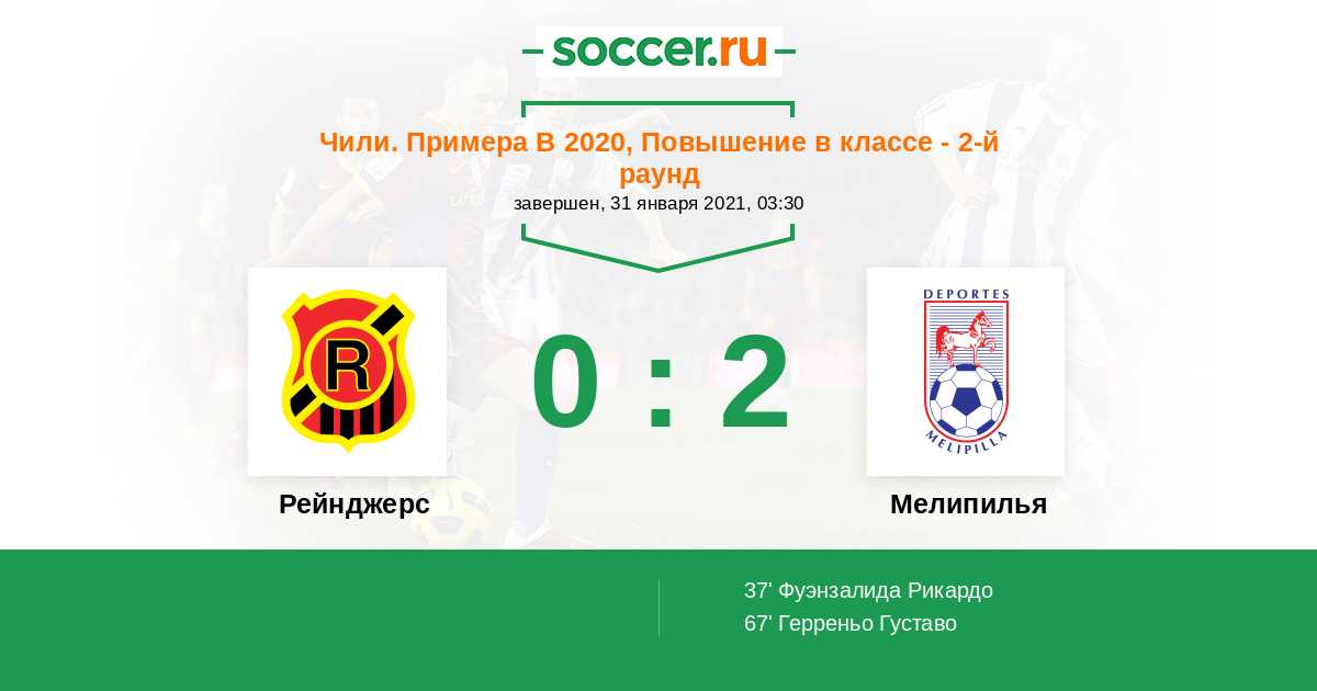 Протокол матча Рейнджерс против Мелипилья