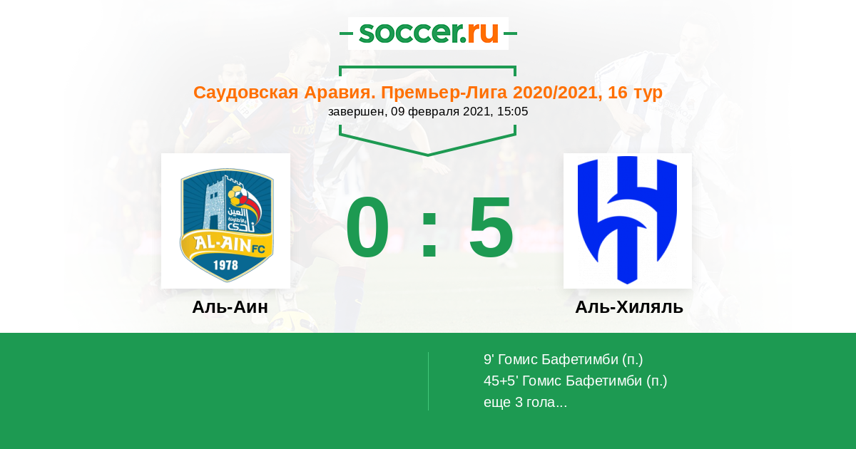 Протокол матча Аль-Аин против Аль-Хиляль