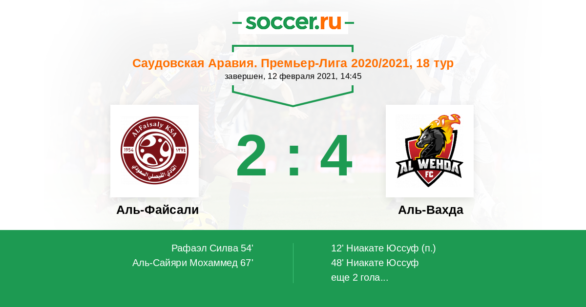 67' (2:2) Аль-Сайяри Мохаммед (80) (Таварес Жулио (19))