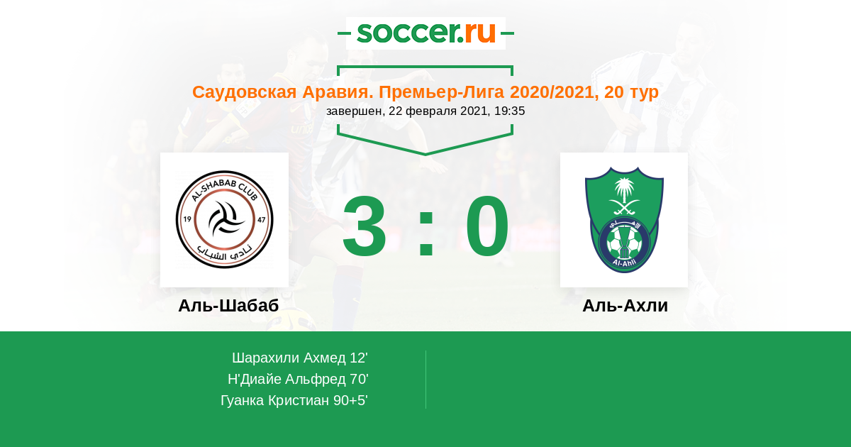 Протокол матча Аль-Шабаб против Аль-Ахли