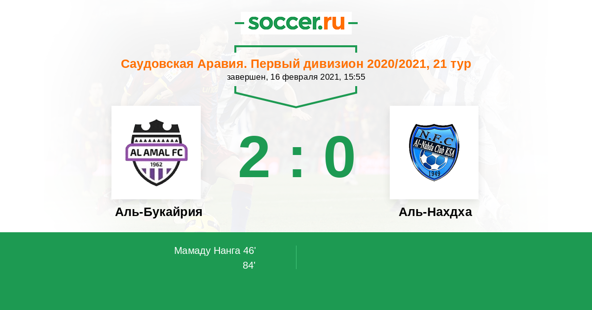 Протокол матча Аль-Букайрия против Аль-Нахдха