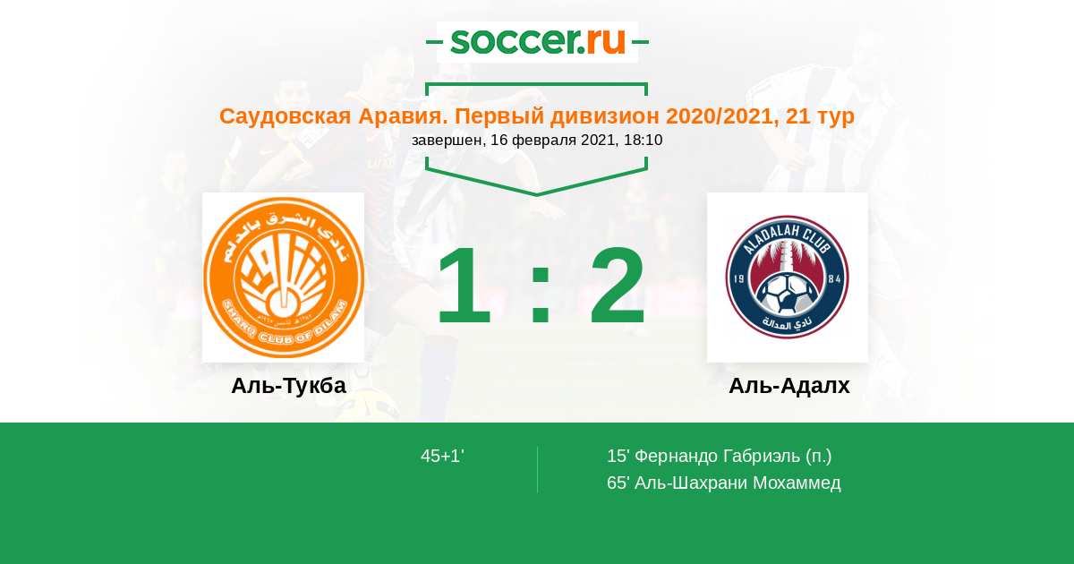 Протокол матча Аль-Тукба против Аль-Адалх